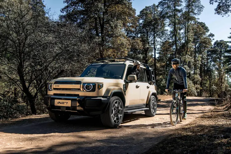 设计层面,V27采用未来经典方盒子造型,垂立A柱与经典圆灯元素结合隐藏式激光雷达布局,实现复古与科技融合。车内采用高坐姿与低窗线设计,搭配双天幕结构,营造通透空间体验。1.3米挑高设计使后排放倒后可形成2150×1050mm平整空间,强化家庭出行与露营场景适应性。