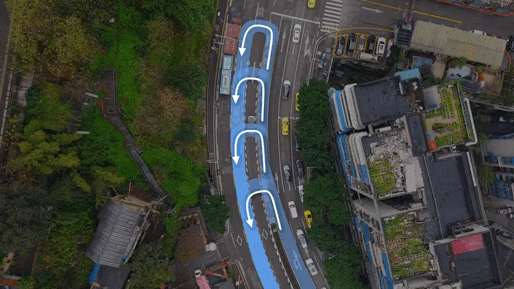在重庆洪崖洞夜间复杂路况、大曲率高架桥、地下环道及串联掉头等场景测试中,V27能够完成红绿灯启停、环道通行、汇入汇出等动作,并在窄路、人车混行及加塞等场景下进行防御性驾驶。系统通过对行人、二轮车及其他车辆行为的综合判断,实现提前预判与平稳控制。