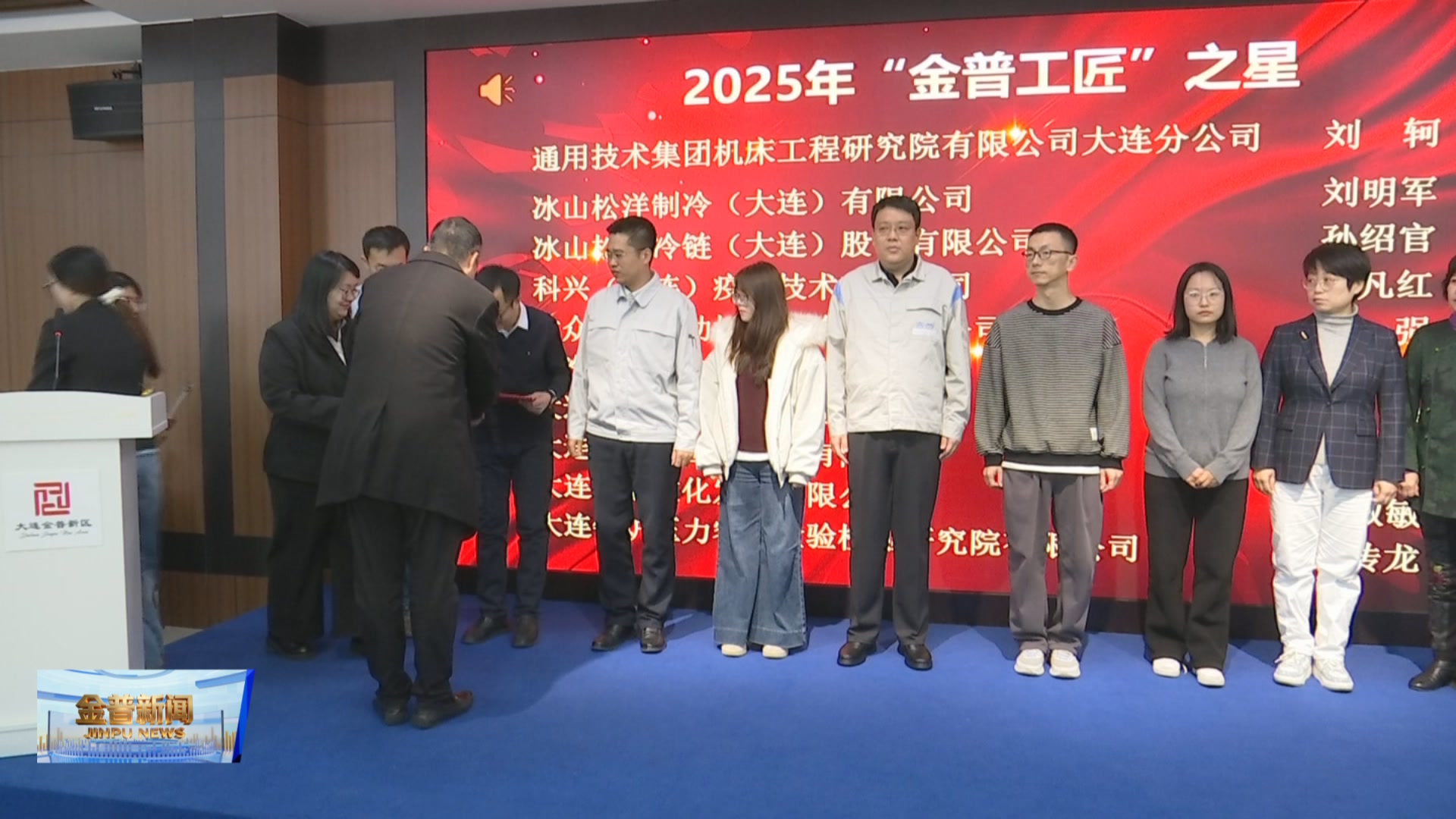 会上,对2025年度在各领域表现突出的技能人才进行了表彰,技能竞赛获奖者、“金普工匠能手”代表及“金普工匠之星”获得者收获证书和奖杯。冰山松洋冷链(大连)股份有限公司的孙绍官作为获奖代表上台分享了个人成长经历与技术攻关故事。