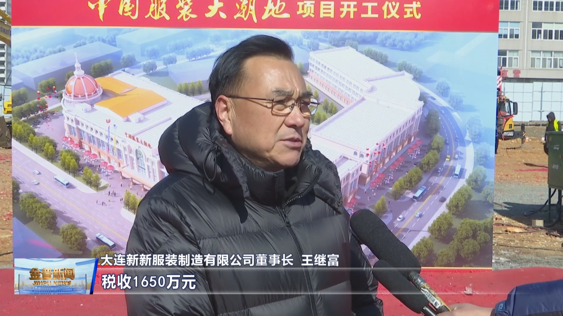 大连新新服装制造有限公司董事长王继富(项目计划新建4条生产线,并引进产业链上下游企业60家以上,项目建成后,实现年产值5亿元,税收1650万元,带动就业3500人。)