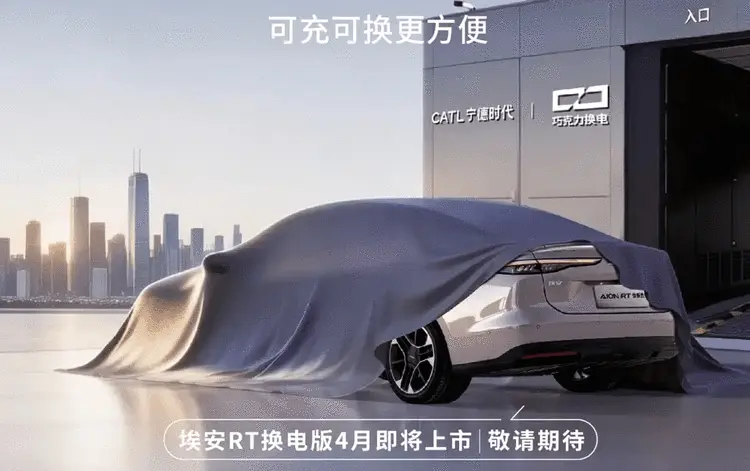 网易汽车3月7日报道 日前从官方获悉,为进一步满足用户多元化、全场景补能需求,广汽埃安正全力推进换电产品与服务落地。去年,埃安联合宁德时代、京东,推出埃安UT super,让10万级小车也能享受换电的便利性。而在今年4月份,埃安RT 换电版也将发布,未来,换电技术将覆盖更多埃安车型,让更多国民轻松迈入“可充可换、随心补能”的新时代。