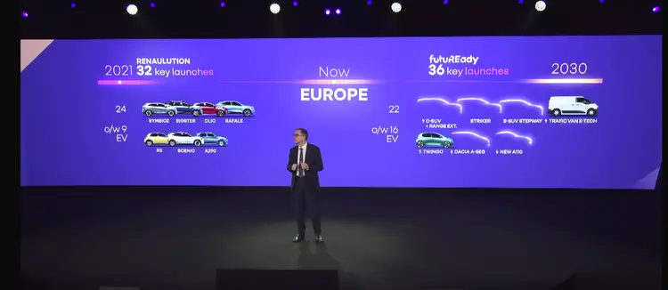 雷诺集团计划在2030年前全球推出36款全新车型。其中,欧洲市场22款(含16款纯电),国际市场14款 。