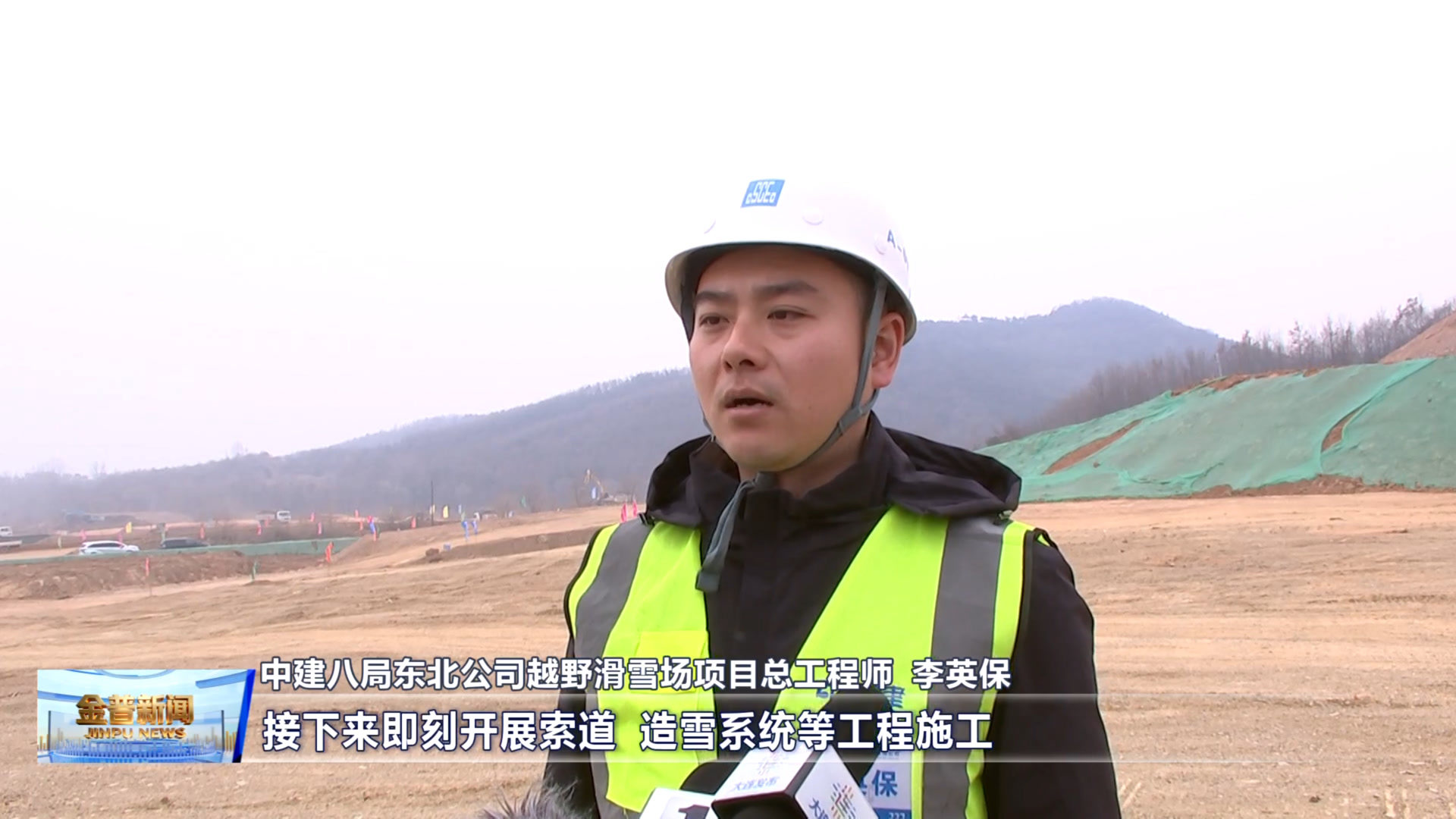 中建八局东北公司越野滑雪场项目总工程师李英保(分为三个大的作业面进行一个平行施工,接下来即刻开展索道、造雪系统等工程施工,确保工期按节点完成。)