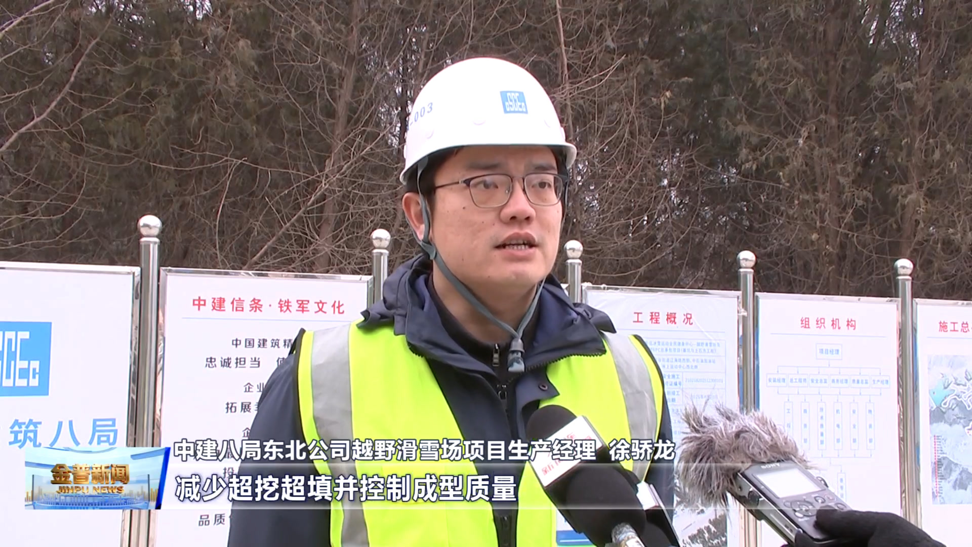 中建八局东北公司越野滑雪场项目生产经理徐骄龙(专业赛事对越野滑雪场的坡度 平整度和压实度有很高要求 我们采取数字化找坡和成型技术 精确控制土方开挖与回填位置及方量 减少超挖超填并控制成型质量 确保工程达到赛事认证要求。)