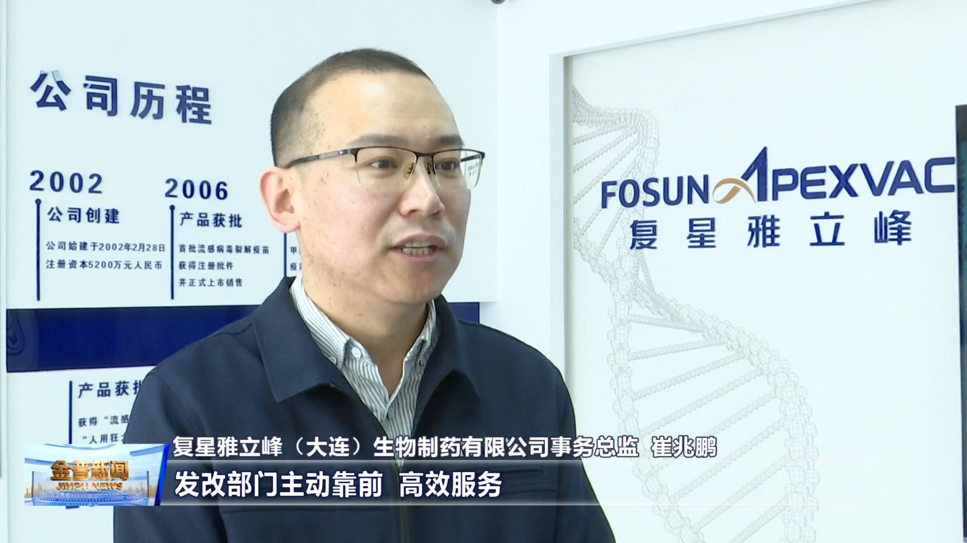 复星雅立峰(大连)生物制药有限公司事务总监崔兆鹏(在项目审批过程中,发改部门主动靠前、高效服务,全程耐心指导、精准对接,帮助我们企业少走弯路,加快进度,真正做到了审批有速度,服务有温度,让我们企业真切地感受到“一次不用跑、高效办成一件事”,绝非一句口号,而是落到实处的便利与安心。)