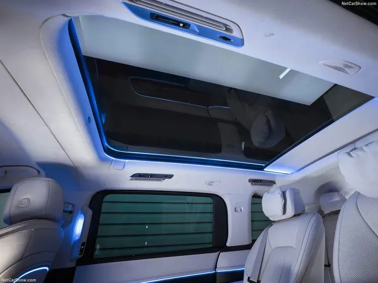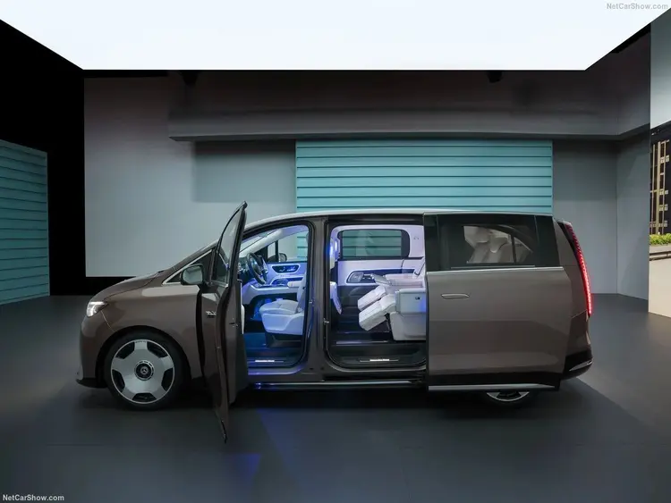 Vision V概念车发布后,奔驰超前的设计引来外界争议。至少对我而言,VLE确实比概念车收敛,融入奔驰全新家族语言,无论GLC EV同款中网、CLA风格贯穿式日行灯,还是新S级三叉星大灯,都呈现了新鲜视觉元素。而且VLE也具备前瞻细节,比如机盖两条筋线就传承自Vision V,点阵光源倒U型尾灯也还原了概念设计,颇为醒目。不过奔驰放弃水滴般的轮廓,让VLE更贴近主流MPV造型,但流畅线条结合隐藏门把手、卡姆尾部,还是让VLE的风阻系数降至0.25Cd,和MEGA不算太远。