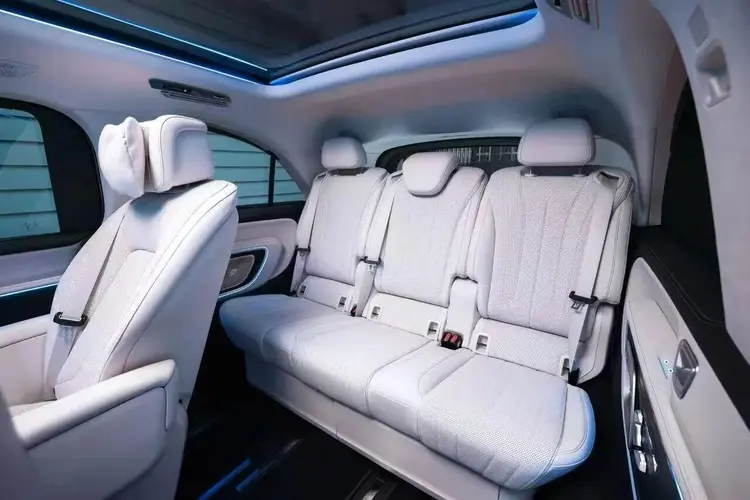 空间方面,VLE具备6-8座灵活布局,除了小桌板和扶手冷暖箱,还提供带按摩和枕头的后排座椅供选配。而且VLE座椅不仅能手动拆卸、旋转,还可以根据四种预设模式进行远程调节,最大可实现793L后备箱容积。