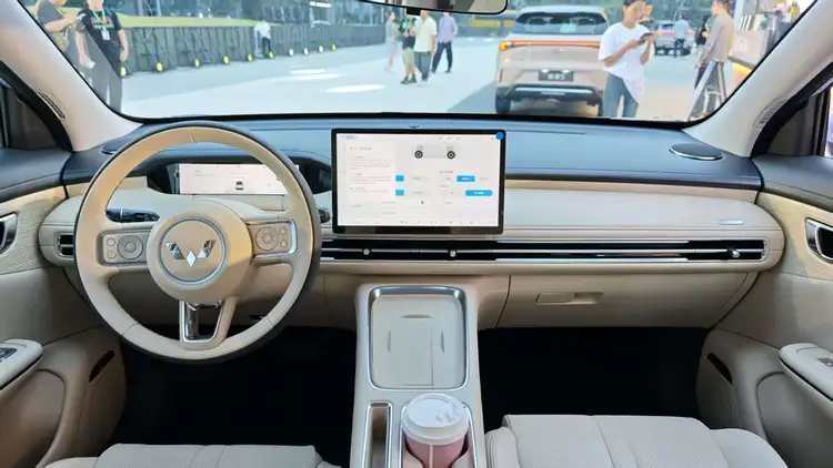 内饰方面,缤果S舒屿座舱采用“静奢栖居美学”设计理念,提供柔白与暖棕两种配色风格,营造安静舒适的车内氛围,车内采用大面积软质材料包覆,搭配3D木纹饰板与镀铬装饰,细节处融入钟表纹理元素,提升整体质感。