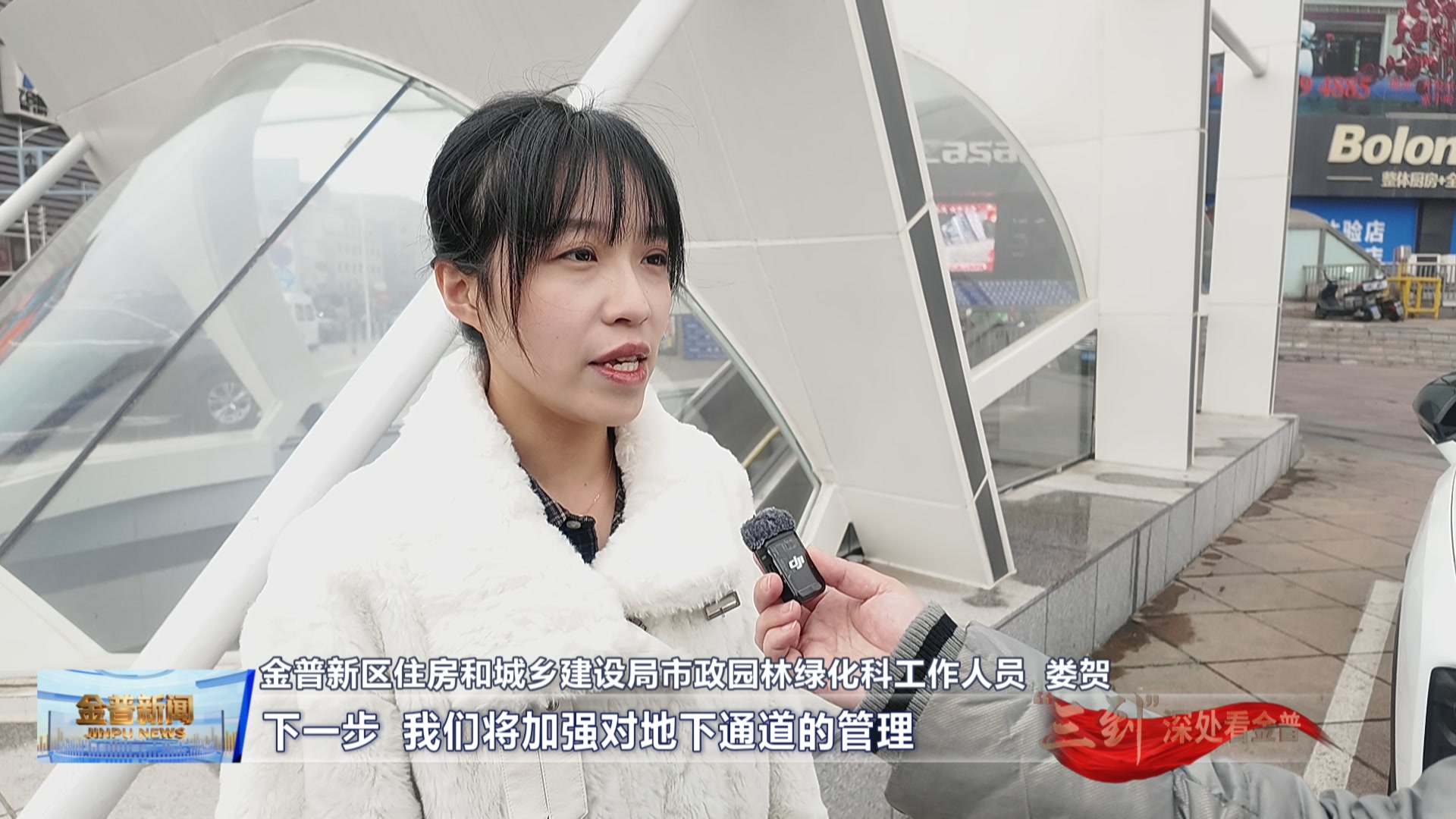 金普新区住房和城乡建设局市政园林绿化科工作人员娄贺(下一步,我们将加强对地下通道的管理,委托德泰养护公司安排专人定期进行看护,同时改善通道内的环境卫生情况。)