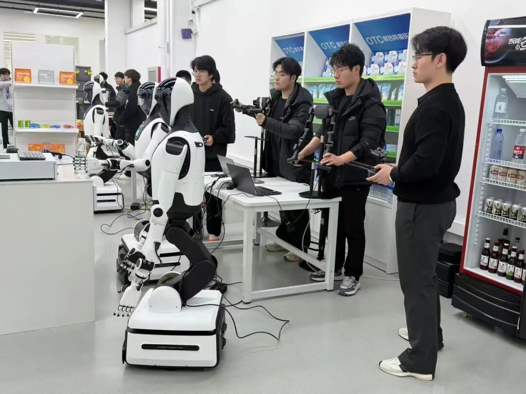 基地里没有巨大的厂房,而是分隔出了一个个高度仿真的工作、生活切片。人类操作员戴着VR头显或通过遥操作设备,将自己的动作转化为机器人的指令。