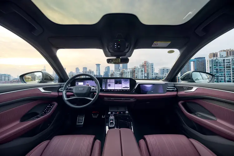 座舱延续奥迪 “数字豪华” 理念,核心控制区域采用11.9英寸曲面全液晶仪表 + 14.5英寸OLED中控触摸屏的环绕式双联屏设计,部分车型额外配备10.9英寸副驾防窥娱乐屏及13.1英寸W-HUD抬头显示,形成 “四屏联动” 体验。搭载高通骁龙8150芯片,支持5G高速互联、无线CarPlay/CarLife及OTA远程升级,导航地图、车机应用可实时更新。