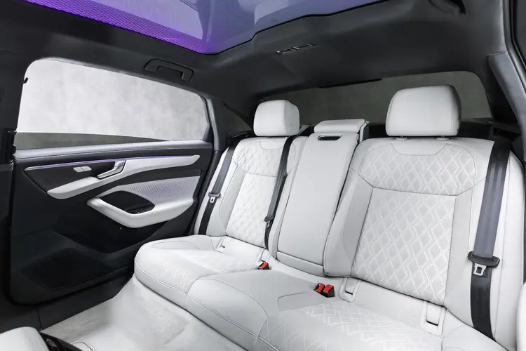 车尾设计灵感呼应奥迪超跑R8,分体式OLED尾灯支持流水、波浪等多种动态点亮模式,中央 “隔断” 结构增强层次感;底部梯形排气装饰与扩散器组件搭配,在保留豪华优雅属性的同时,注入澎湃运动基因。