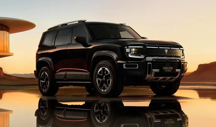 车身尺寸方面,深蓝G318无忧穿越版长宽高分别为5125/2025/1950mm,轴距2880mm,接近角/离去角分别为27°/31°,整车最小离地间隙210mm-240mm。新车前翼子板增加了换气装饰,轮眉轮距加宽40mm,带来强悍的力量感。新车将配备18/20英寸轮圈,并提供三种造型,还可选装原厂AT轮胎。