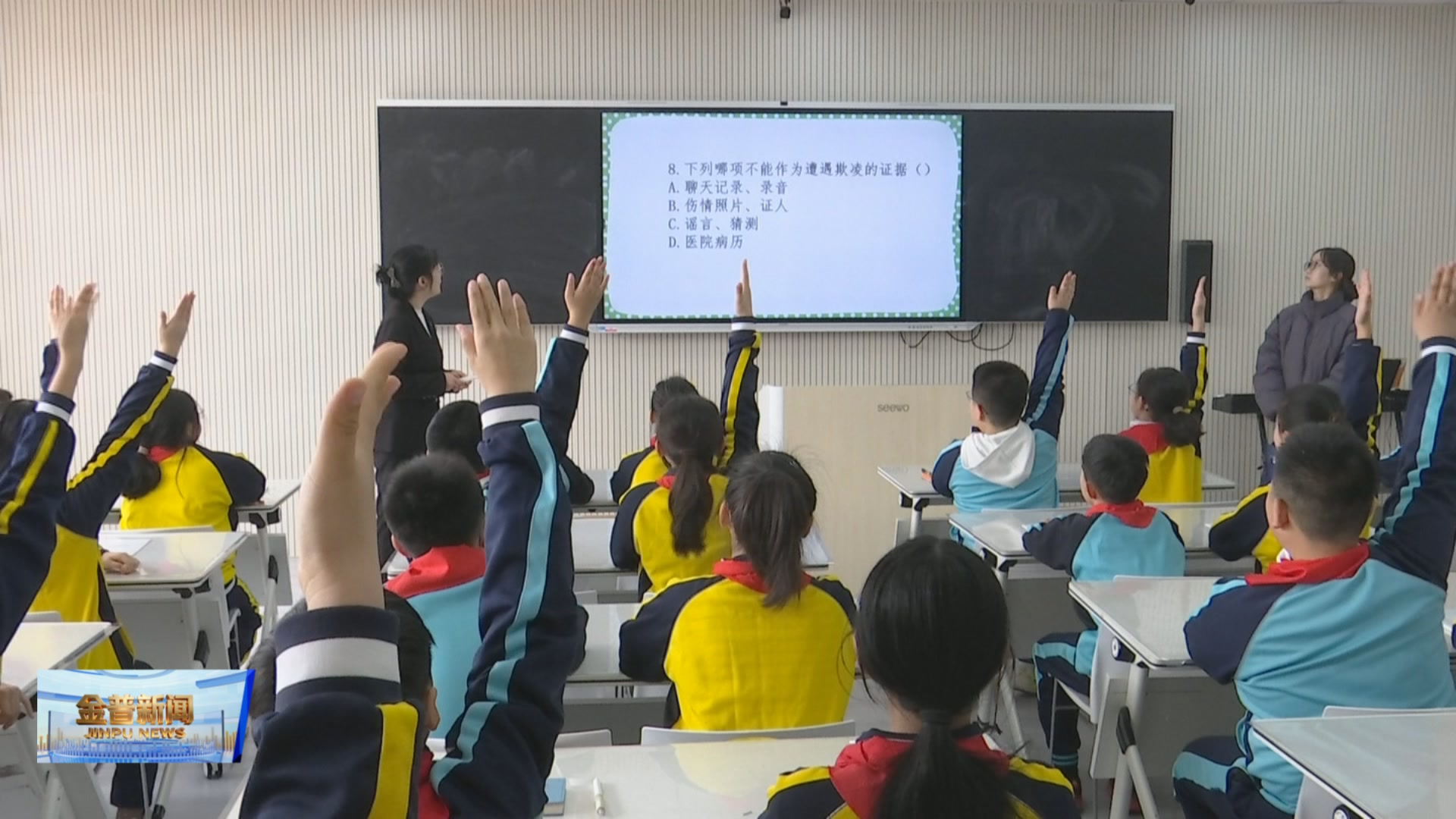 金普新区司法局精心设置法治知识互动问答,围绕《未成年人保护法》《预防未成年人犯罪法》等内容,设计贴近校园生活的题目,以趣味形式让法治学习寓教于乐。同学们踊跃抢答、积极参与,在轻松氛围中巩固法律知识,实现“以答促学、以学践法”。
