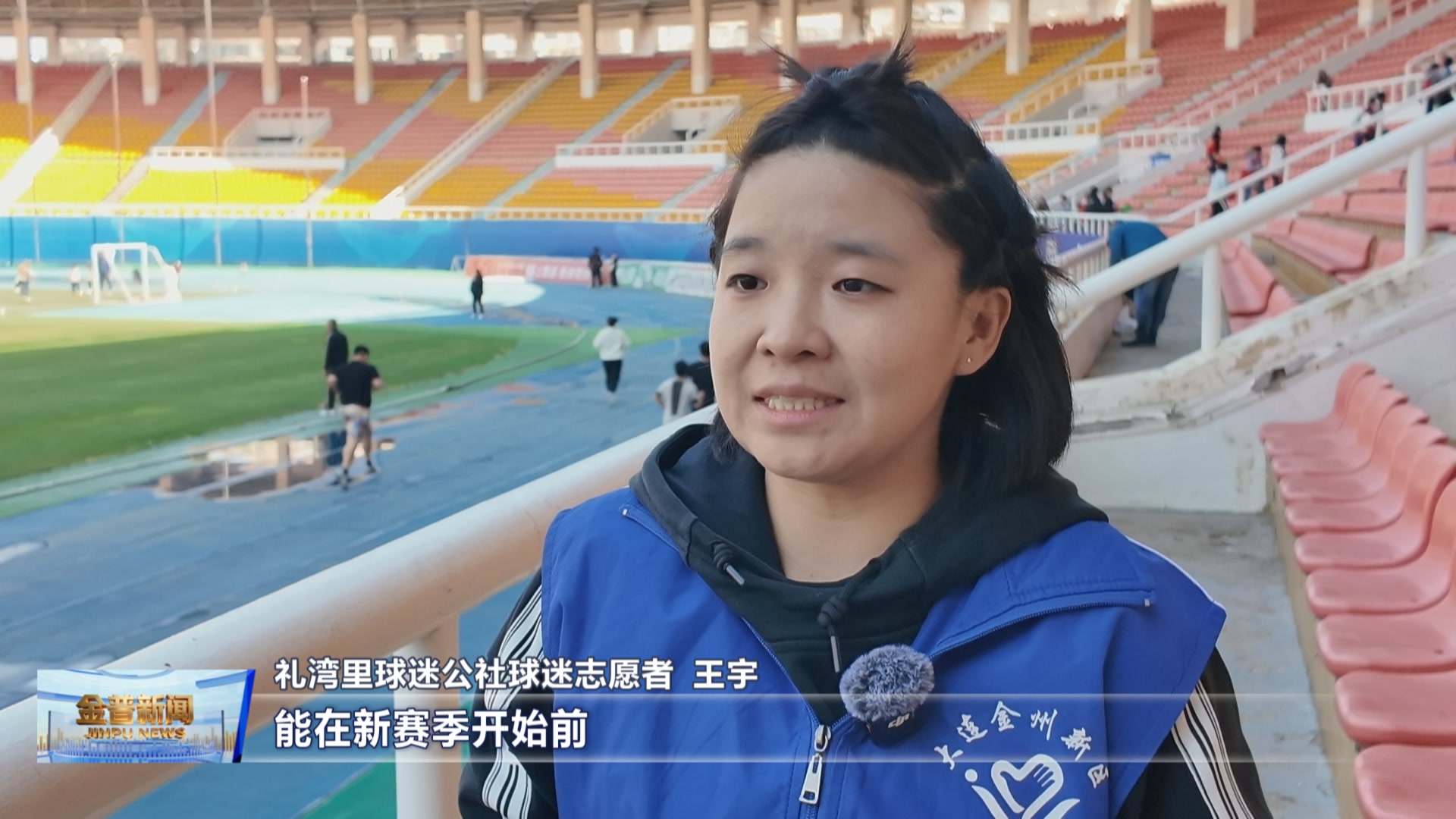 礼湾里球迷公社球迷志愿者王宇(我是一名资深球迷,“爱足球、爱大连”早已刻在骨子里。得知社区组织赛前场地清扫活动,我第一时间就报了名。能在新赛季开始前,为我们的主场出一份力,让各地球迷走进金州体育场,就能感受到大连的干净与热情,我觉得特别有意义。)
