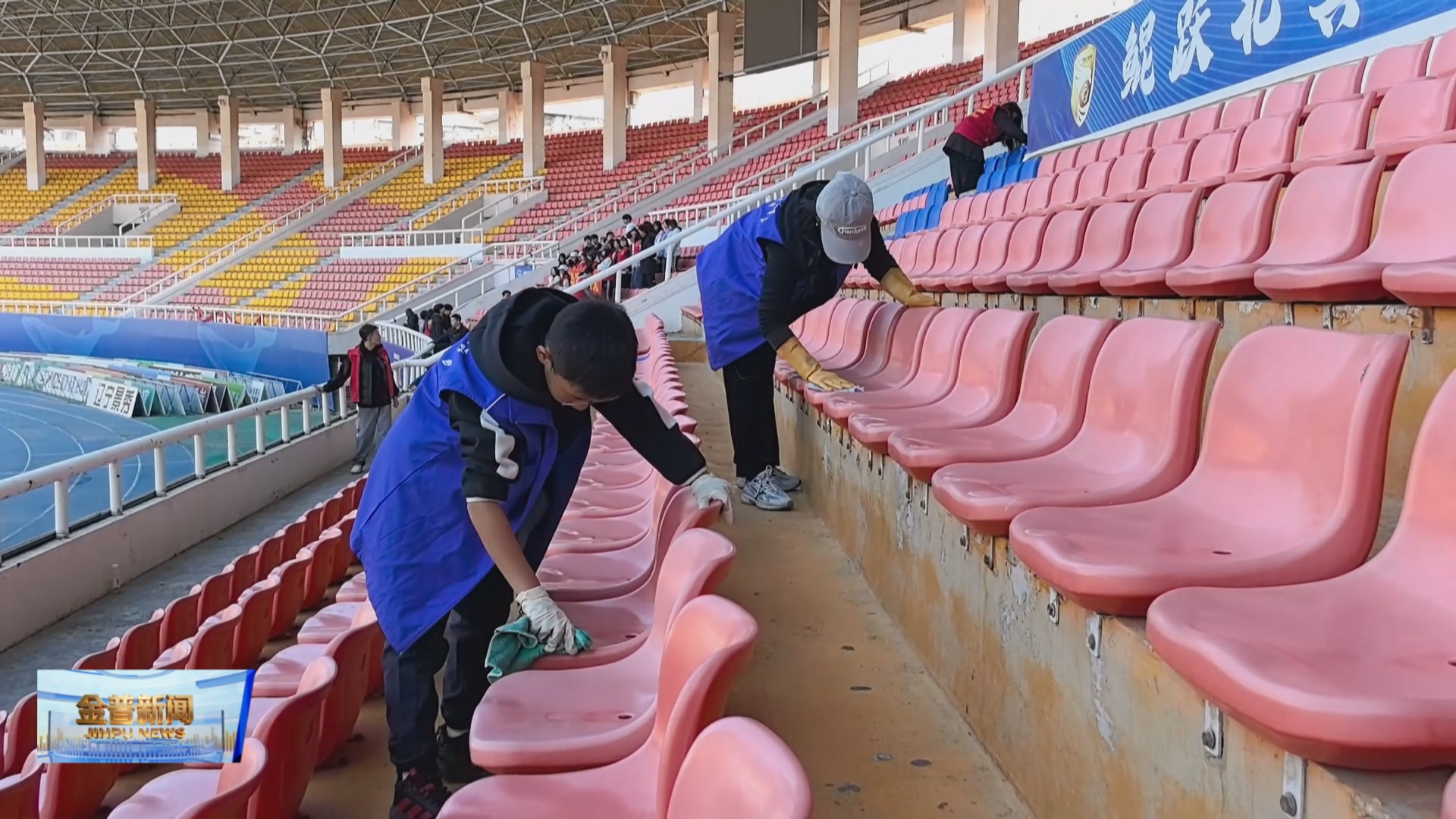 活动现场,300余名志愿者身着志愿服装,化身“净场先锋”,手持抹布、水桶、垃圾袋等工具,分工协作、默契配合,对看台座椅、走廊地面、公共区域进行全面清扫擦拭,仔细清理缝隙中的灰尘与杂物,不放过任何一个卫生死角。