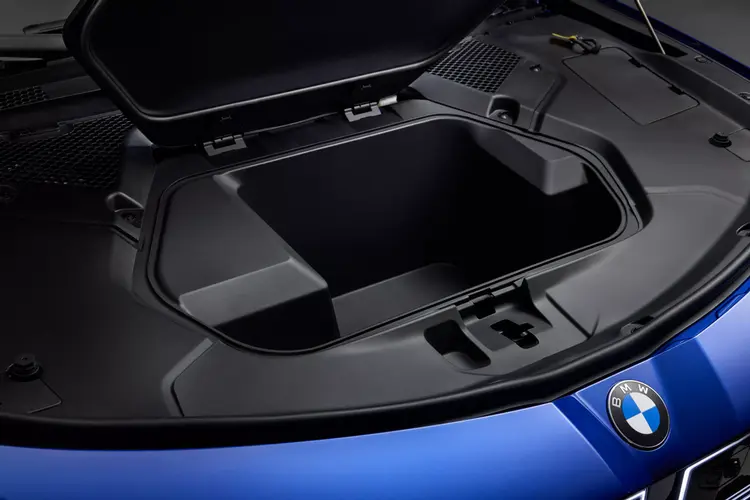 先从车外细节来看,与此前看到的宝马iX3等车不同,我们其实可以说,宝马经典的双肾格栅已经彻底消失了,取而代之的是嵌入在两侧分体飞翼中的封闭区间,它们由半围绕的双层光带组成,让车头看上去更具科技感了。同时,前保险杠中的对称式分体前唇与新一代宝马X3相似,而内部则是主动闭合式进气格栅,能为车辆创造更高效的空气动力学反馈。