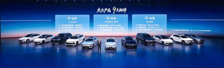 这家走过35年、累计销量突破3000万辆的合资车企,没有喊出让人“瞳孔地震”的激进目标,没有发布“快、新、炫”的颠覆性技术,而是集中完成了两件事:五款车型矩阵式落地,覆盖燃油与插混、轿车与SUV主流市场;同步推出“大众严选9久相伴”九大权益,对用户最关心的安全、质保、售后问题作出“托底“承诺。