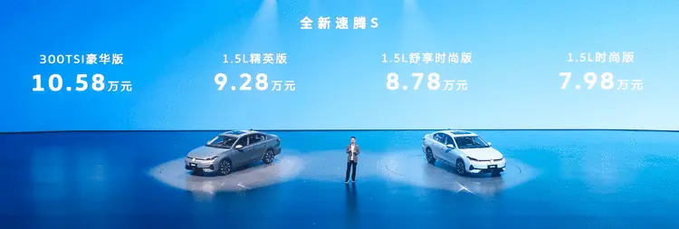 全新速腾S以7.98万元起正式入市,共推出四款配置,价格区间覆盖7.98万—10.58万元。作为速腾20周年之际推出的亲民版车型,它延续450万用户积淀而来的德系品质,搭载1.5L与1.5T双动力组合,配备AI大模型交互系统与高通8155同级智能体验,同时经历近千万公里耐久测试与3137次超国标安全验证。这款车的核心使命,是把A+级家轿的门槛进一步拉低,让年轻首购家庭能用亲民预算,获得不缩水的品质、空间与智能。