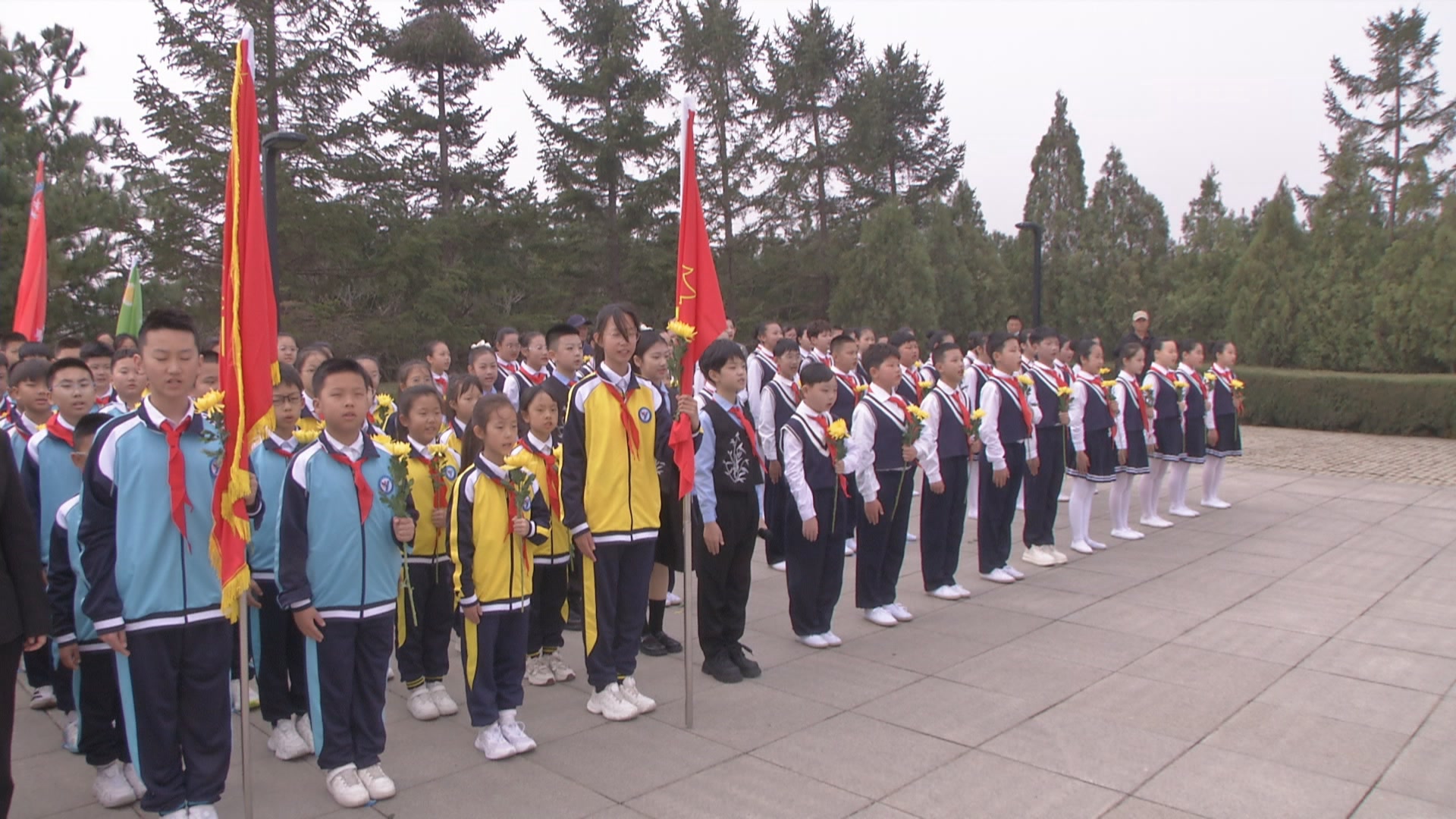 上午9时30分,阳光和煦,金普新区烈士陵园内,巍然矗立的烈士纪念碑上,“人民英雄永垂不朽”八个大字在阳光下熠熠生辉。伴着雄壮的《中华人民共和国国歌》,祭扫活动正式拉开帷幕。奏唱国歌完毕,全体人员列队肃立,面向烈士纪念碑默哀,深切缅怀为民族独立、人民解放和国家富强英勇捐躯的革命先烈。随后,少先队员们手捧鲜花,齐声高唱《我们是共产主义接班人》,传递出新时代少年继承先烈遗志、争做时代新人的坚定决心。