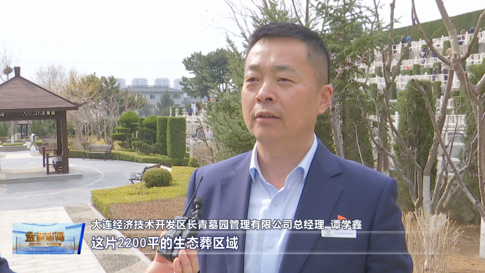 大连经济技术开发区长青墓园管理有限公司总经理谭学鑫(这片2000多平的生态葬区域,是我们去年下半年重点推进的民生工程,耗时8个多月完成规划、建设和绿化,就是为了在今年清明,给市民提供更多节地生态的安葬选择。)