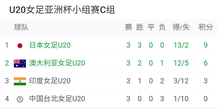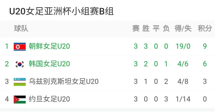昨晚结束的四场比赛,其中日本女足5-2逆转澳大利亚女足,而中国台北女足1-3不敌印度女足,朝鲜女足5-0碾压韩国女足,乌兹别克斯坦女足4-0横扫约旦女足。