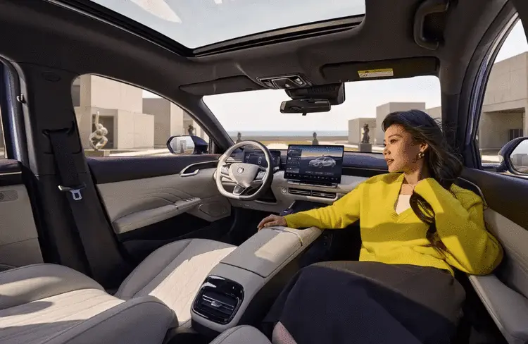 内饰方面配备10.25英寸全液晶仪表盘和14.6英寸中控屏,搭载天枢智慧座舱及天枢OS车机系统。全系标配内置DeepSeek的AI大模型语音系统,支持全场景语音交互。此外,还提供无线充电面板、8扬声器音响、256色氛围灯、全景天窗以及前排座椅加热与通风功能。