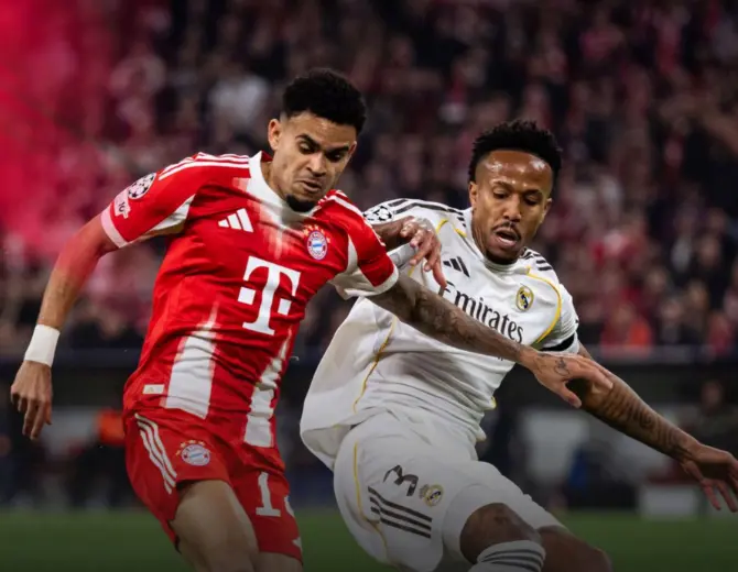 这一个比赛日,皇马迎来了欧冠1/4决赛次回合生死战的考验,奔赴安联球场挑战拜仁慕尼黑,本场比赛皇马靠着居莱尔的双响和姆巴佩的进球,三度在客场取得了比分上的领先,但是卡马文加最后时刻被罚下成为了转折点,拜仁最终靠着帕夫洛维奇、凯恩、迪亚斯和奥利塞的进球,4-3逆转获胜,两回合总比分6-4晋级。