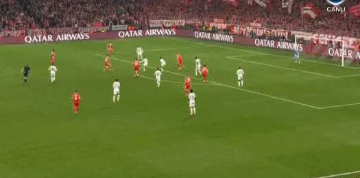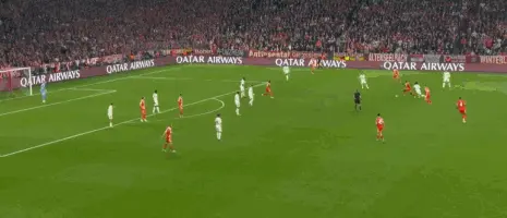 第86分钟皇马遭遇重创,卡马文加拼抢中犯规,两黄变一红被罚下,陷入少一人作战的不利处境之中,仅仅过了3分钟,人数占优的拜仁就再次攻破了卢宁的十指关,迪亚斯大禁区外一脚远射,将比分追至3平,伤停补时阶段,奥利塞再入一球,将全场比分定格为了4-3。