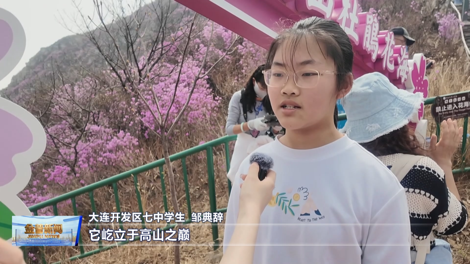 大连开发区七中学生邹典辞(我很欣赏杜鹃花,因为它属于旷野,它屹立于高山之巅,而不在春天与别的花争奇斗艳。这里的花都是由一朵朵小花组成起来的,因为有这些个体才有这样美丽景色。人生也是一样,因为有这么多不同的我们,所以才有了这么美好的世界。)
