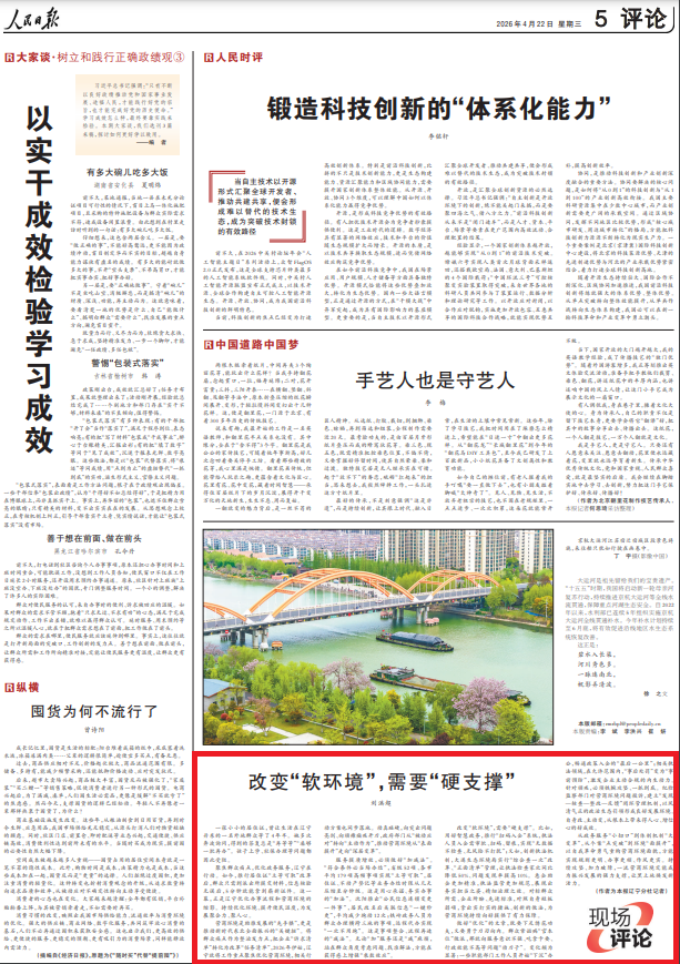 改变“软环境”,需要“硬支撑”。比如,用好智慧政务,推行“扫码入企”系统,执法人员入企需审批、扫码、留痕,实现“无数据不检查、无风险不打扰”;又如,创新执法机制,大连生态环境局实行“综合查一次”改革、“正面清单”管理,让执法检查家次同比降低50%、问题发现率提高10%。惠企助企更加精准,执法监管更加规范,展现出务实担当之姿、精细治理之效。对标群众所需、企业所盼、先进标准,对照自身短板弱项,拿出实打实的措施、创新的做法,为营商环境持续向好提供了有力保障。