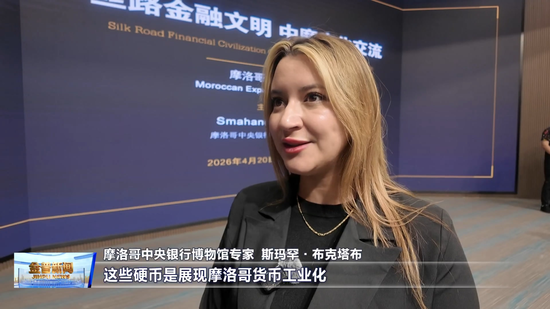 摩洛哥中央银行博物馆专家 斯玛罕·布克塔布(这些硬币是展现摩洛哥货币工业化、现代化一个非常好的证据。她希望作为一个纪念品也作为对于中国的礼物,她希望大家在听完她的讲座,以及看到这些货币的时候,来明白摩洛哥货币历史的繁荣与昌盛。)
