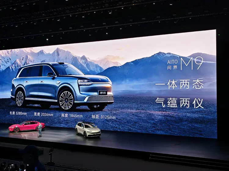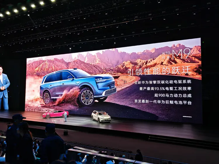全新问界M9基于全新800V双碳化硅动力平台打造,电驱工况效率高达93.5% 。纯电版本搭载120kWh华为巨鲸电池组,CLTC工况纯电续航最高达750km 。配备双电机四驱系统,前、后电机最大功率分别为220kW与277kW 。