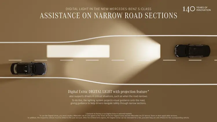 依托MB.OS架构,ULTRA RANGE超远距照明功能不仅实现长达600米的照射距离,更具备弯道照明和局部远光功能,可随弯道主动调整照射方向。