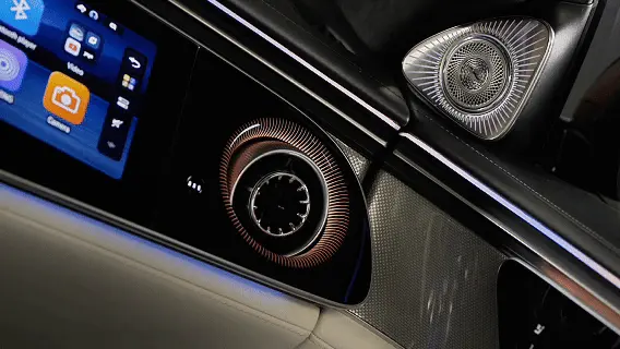 S级轿车根据车身架构对音响系统与音场进行调校,结合杜比全景声®与多重声学静谧降噪,打造殿堂级音乐享受。Burmester®高端4D环绕立体声音响系统由39个扬声器与4个振荡器组成,总功率达1,690瓦;集成于座椅内的4个振荡器将旋律转化为细腻的物理振动,带来4D感官共鸣。