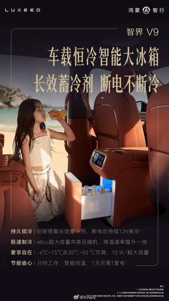 配上-6℃-15℃及35℃-50℃可调的10.9L智能冷暖箱,夏天吃冰棍,冬天喝热水,宛如移动会客厅。