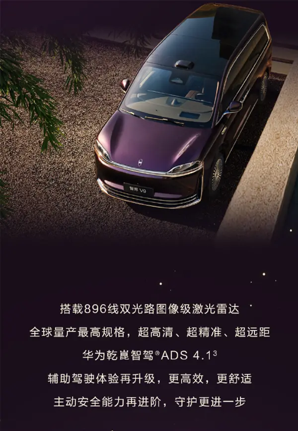 另一方面,V9的推出对于智界的意义早已不是简单的新车范畴了,是品牌向上突破,重构高端MPV格局的关键一步。那智界V9到底有哪些杀手锏?