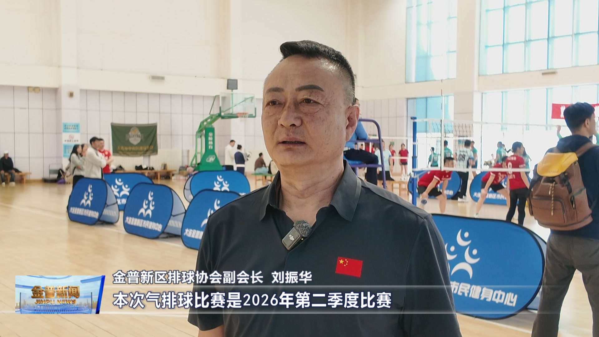 金普新区排球协会副会长刘振华(本次气排球比赛是2026年第二季度比赛,采用的形式是“3+2”,三男两女,竞技组是相对于年轻的,六支队伍,群众组是中老年的,八支队伍,这项赛事不仅是队员日常训练成果的一次集中检验,更是球友们增进感情,展示新区风采的大舞台。)