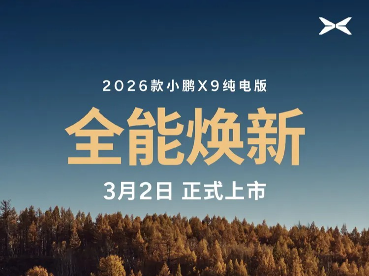 750km超长续航 2026款小鹏X9纯电版将于3月2日上市