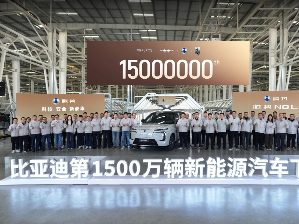 比亚迪第1500万辆新能源车下线,腾势N8L第15000台成里程碑车型