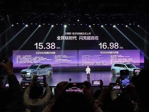 免费闪充18个月/纯电续航620km 钛3闪充版售15.38万元起
