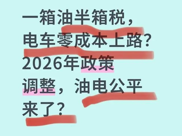 一箱油半箱税,电车零成本上路?2026年政策调整,油电公平来了?