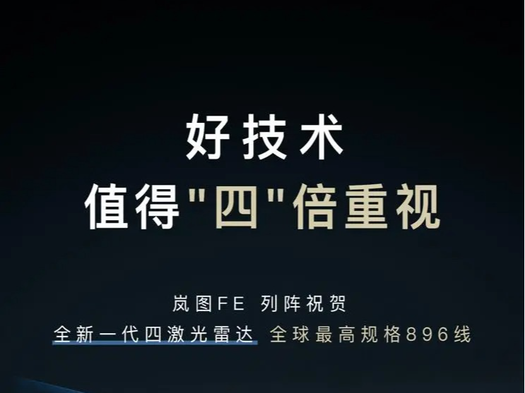 岚图新车FE:将搭载华为乾崑全新一代896线四激光