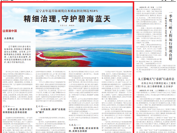 人民日报生态版头条点赞辽宁:精细治理,守护碧海蓝天