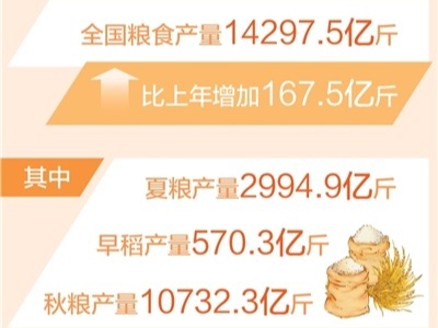 国家统计局:2025年全国粮食总产量14298亿斤,增长1.2%