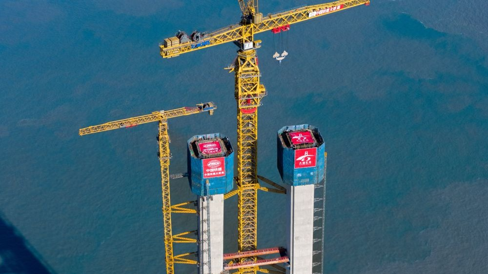 一跨1768米!国内最大跨度跨海大桥首个主塔顺利封顶