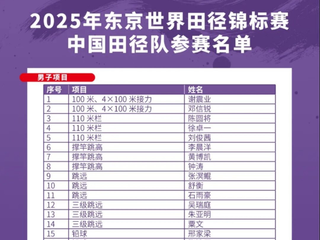 73人参赛,中国田径队公布东京世界田径锦标赛参赛名单