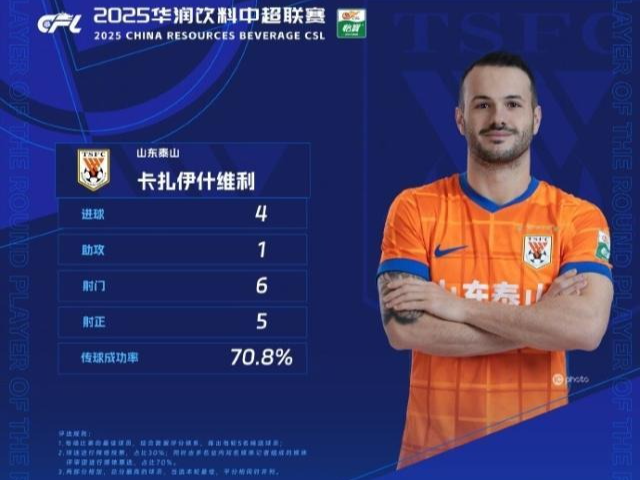 官方:4球1助!卡扎伊什维利当选中超第23轮最佳